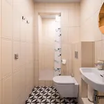 La struttura, oltre a fornire servizi di sicurezza come rilevatori di fumo, dispone di un balcone, un bar sulla terrazza e un salottino. Entrambi sono dotati di un impianto di climatizzazione. Oltre a opzioni di intrattenimento come un televisore e una TV a schermo piatto con canali satellitari, gli ospiti possono usufruire di un divano. Quest'appartamento è dotato di un bagno con asciugacapelli, un set di cortesia e asciugamani. Inoltre, troverete un bagno alla francese, una vasca da bagno e una doccia.